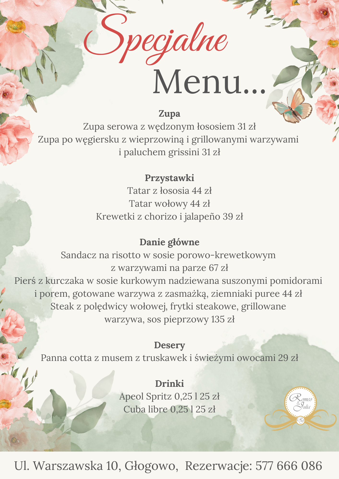 Specjalne menu – W ofercie znajdziecie przystawki, dania główne, deser oraz drinki w wyjątkowych cenach. Wszystko przygotowane z myślą o tym, byście mogli po prostu dobrze spędzić ten czas.