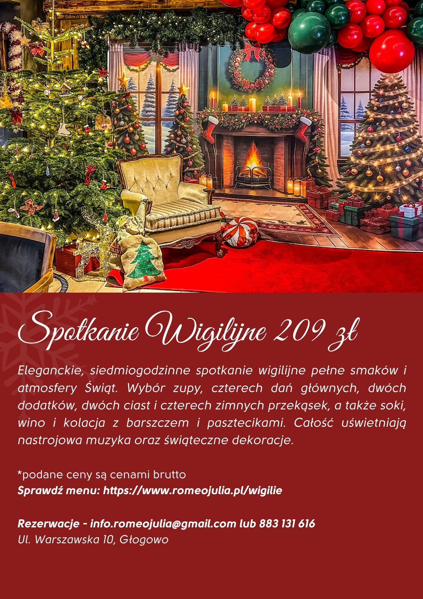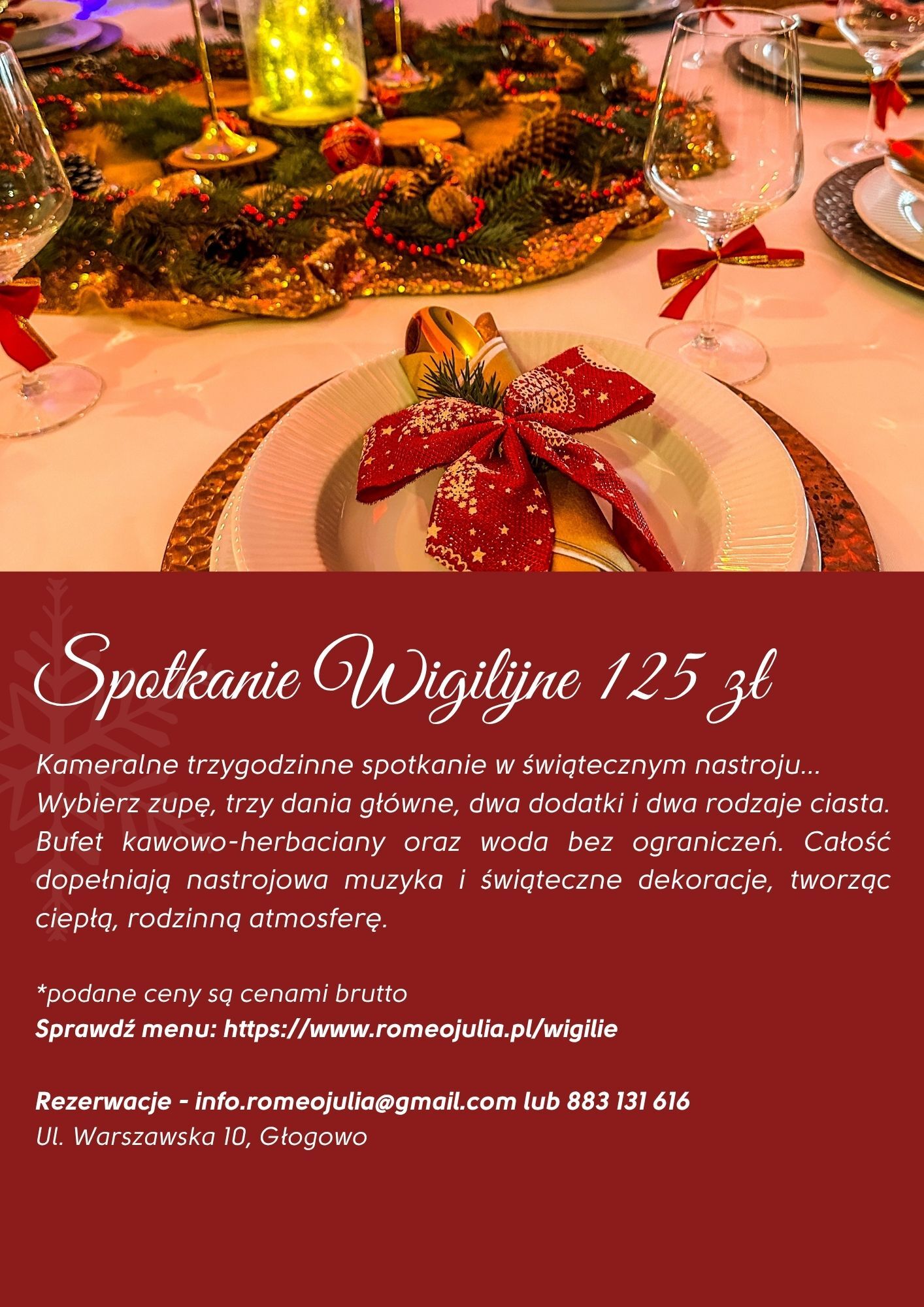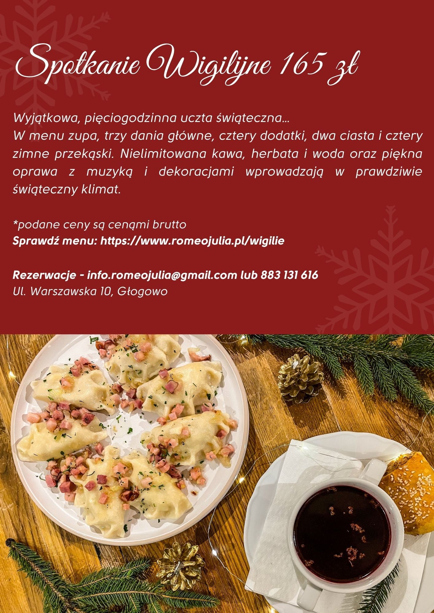 Zapraszamy do przeżycia świątecznych chwil w wyjątkowej atmosferze pełnej ciepła i magii. To doskonała okazja, aby poczuć prawdziwego ducha świąt, delektować się aromatami świątecznych potraw i cieszyć się niezapomnianym czasem.